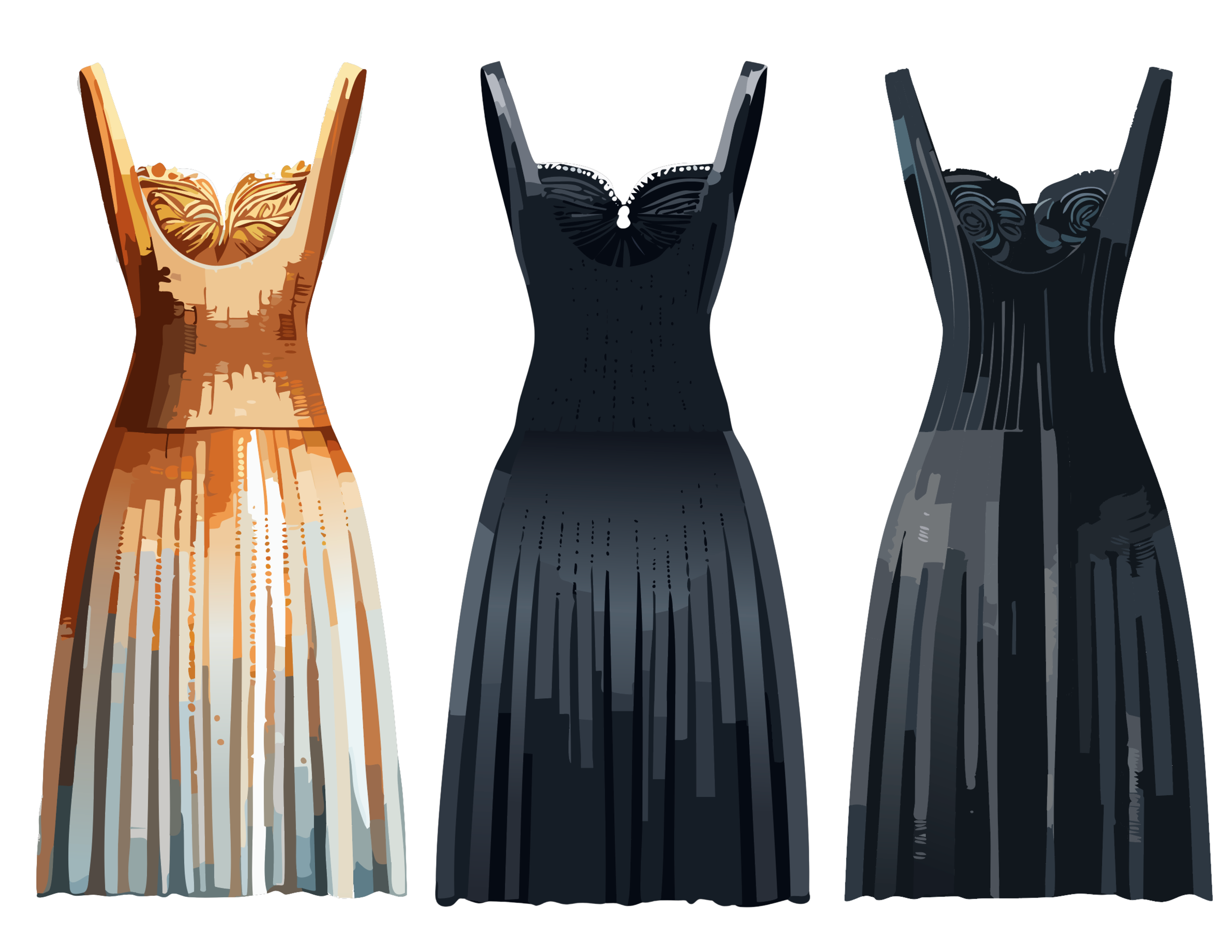 Adobe Illustrator and artificial intelligence were used to refine the sketching process. Utilizing Illustrator’s generative AI feature, the sketch was selected, and the prompt "Dress" was applied to generate an enhanced visualization. A similar approach was taken for the rose motif, with each garment detail generated separately to ensure an accurate interpretation of the original design.